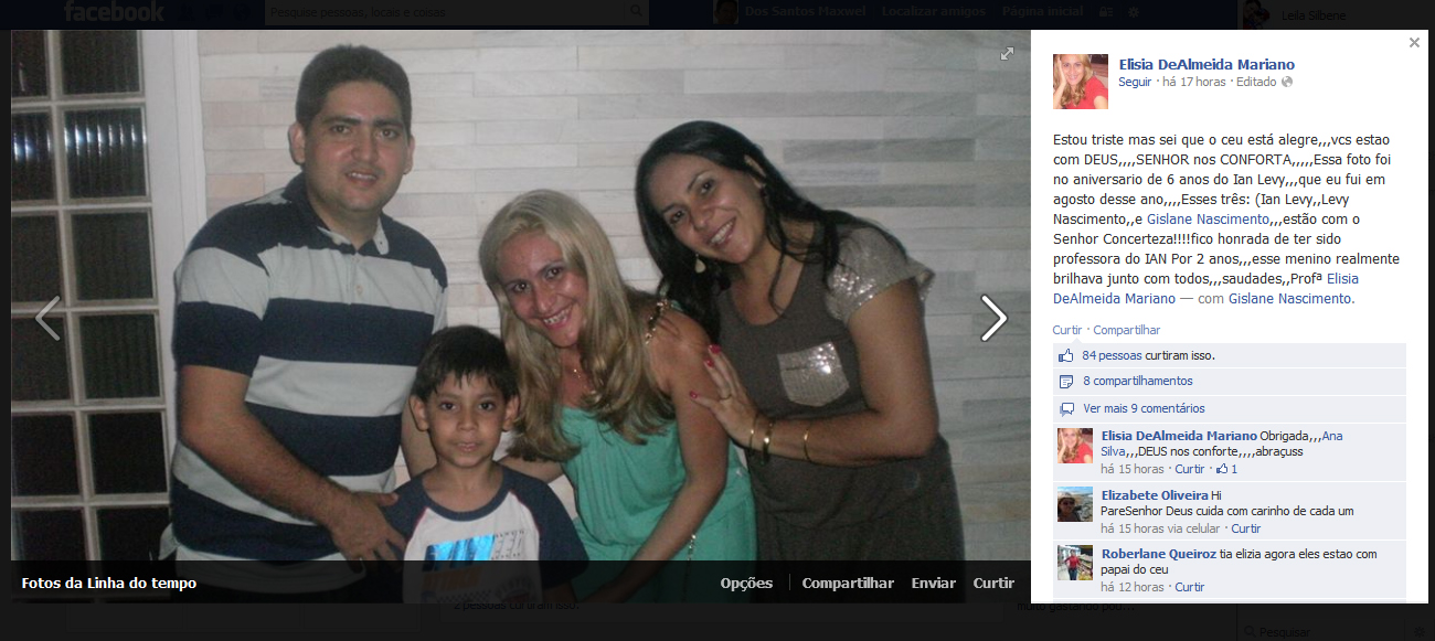 Os amigos do casal Levy Oliveira do Nascimento e Gislaine Mesquita, que morreu juntamente com o filho Ian Levy, de 6 anos, em acidente no quilômetro 235 da BR 174 (Manaus/Boa Vista), manifestaram no Facebook solidariedade a familia no dia de ontem.