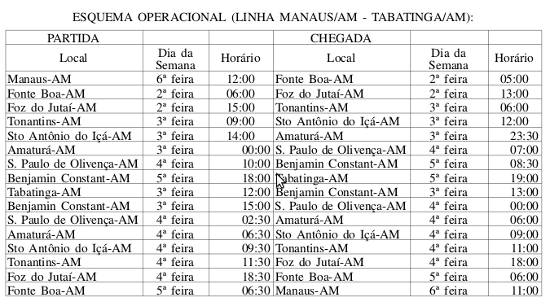 A Agência Nacional de Transportes Aquaviários – ANTAQ autorizou a A. Dos R. Monteiro e Cia Ltda, o direito a prestar serviços de transporte de passageiros na Bacia Amazônica. As rotas, ligando Manaus a diversos municipios, foram definidas na tabela abaixo: