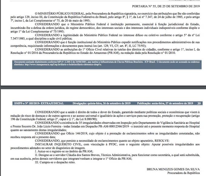 Manaus/AM - Após o Departamento de Vigilância Sanitária encontrar 35 irregularidades no Hospital e Pronto Socorro Dr. João Lúcio, localizado na zona Leste de Manaus, o Ministério Público Federal no Amazonas (MPF) abriu investigação para apurar a situação. Um inquérito civil foi aberto pela procuradora Bruna Menezes da Silva, conforme portaria publicada no Diário Oficial Eletrônico do MPF desta sexta-feira (27).