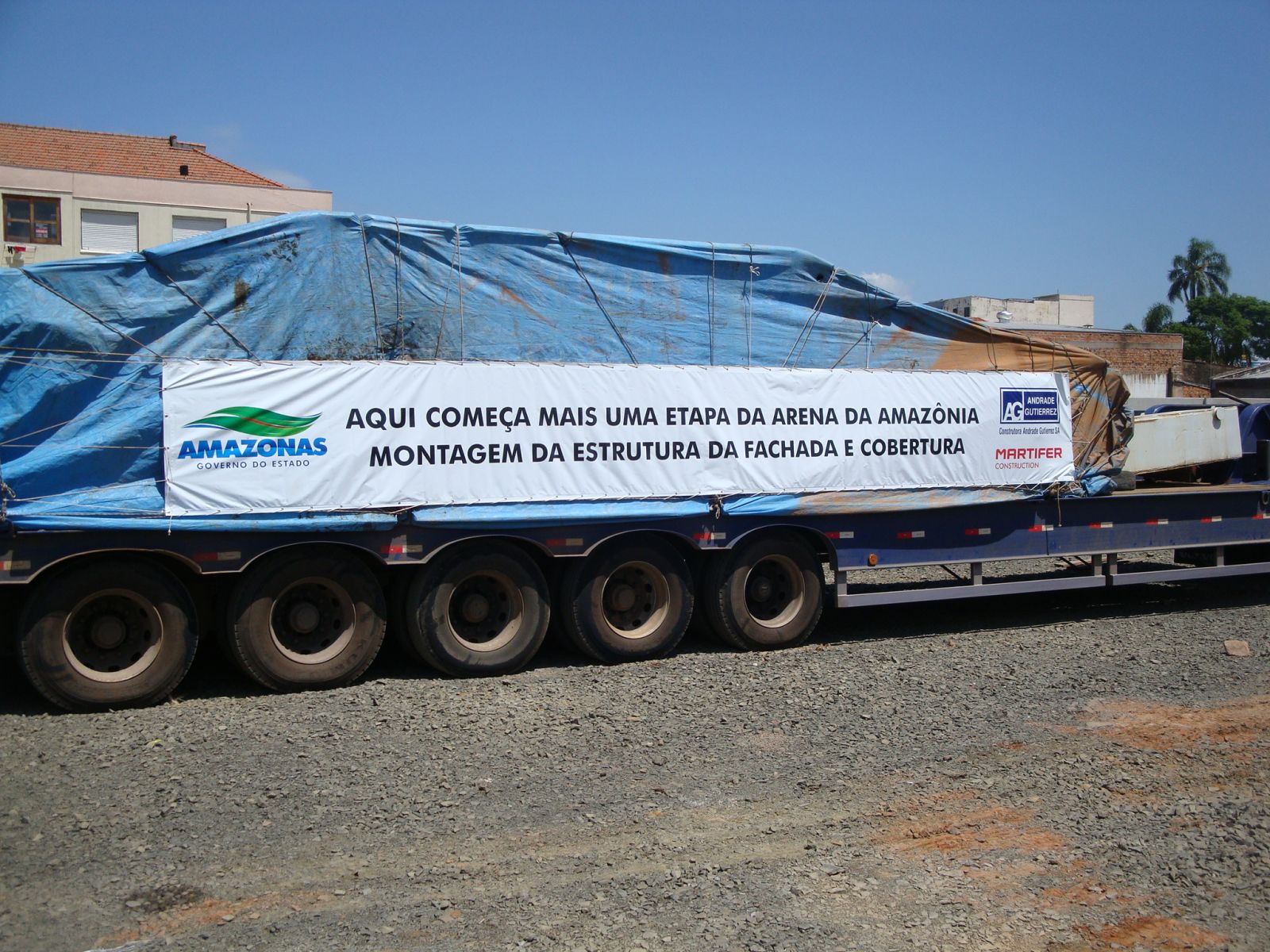Para chegar a Manaus, os veículos saíram de Porto Alegre no dia 15 de dezembro. As primeiras cargas chegaram a Porto Velho (RO) no dia 23 do mesmo mês e então foram transportadas via fluvial para a capital amazonense. O segundo guindaste e as primeiras peças para montagem da cobertura sairão de Portugal ainda este mês e devem começar a chegar em Manaus no fim de março.