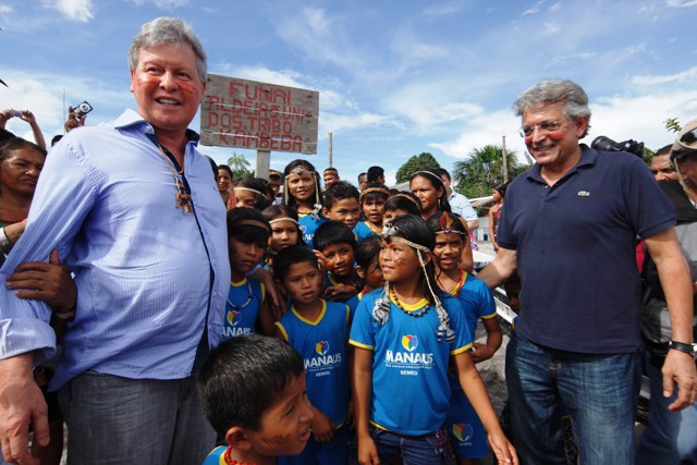 O prefeito de Manaus, Artur Virgílio Neto, e o secretário municipal de Educação, Pauderney Avelino, entregaram sexta-feira, 19, Dia do Índio, a Escola Municipal Três Unidos, na comunidade do mesmo nome, localizada na área rural do Rio Negro. A escola, totalmente reformada e reestruturada, atende uma reivindicação de 18 anos, das etnias Kambebas, Saterê e Baré.