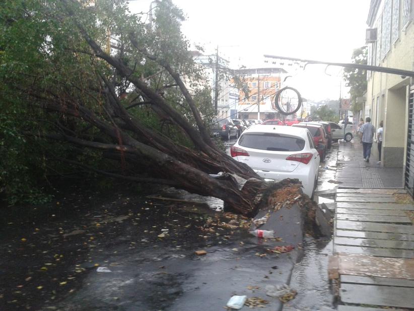 Árvore cai sobre rede elétrica e deixa parte do Centro sem energia