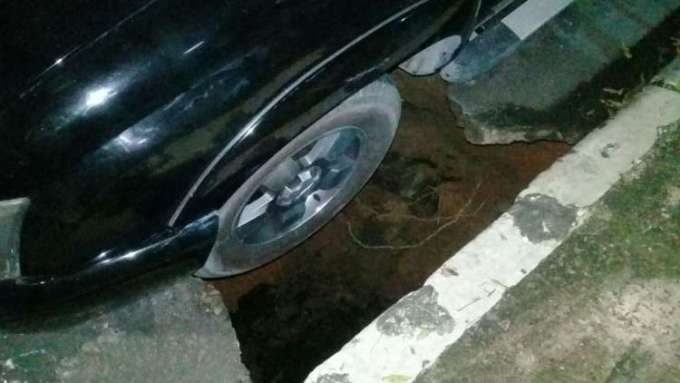De acordo com o Lindomar Gonçalves, 52, dono do veículo, disse que estacionou o carro para acompanhar a colação de grau da filha na instituição de ensino, Instituto Federal do Amazonas (Ifam) e, ao retornar deparou com o carro dentro de um buraco, após o asfalto ceder.