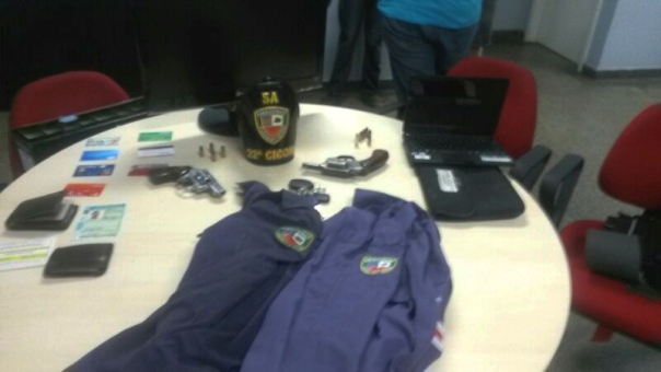 Com esses acusados foram encontrados dois revólveres calibre 38, munições, TV, computador, além de equipamentos que estavam sendo usados para arrombar o caixa eletrônico.