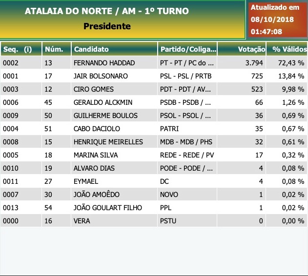 Atalaia do Norte: Presidente - Candidatos mais votados