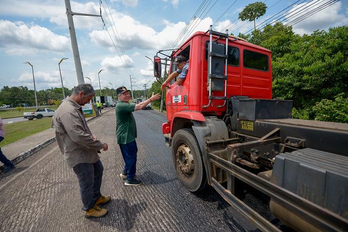 Manaus/AM - Outra grande via de Manaus está recebendo as obras de recapeamento da Prefeitura de Manaus pelo programa Requalifica 2. A avenida Santos Dumont, popularmente chamada de estrada do aeroporto, tem quatro quilômetros de extensão e já passou pelo processo de fresagem, que é a retirada do antigo asfalto, os trabalhos agora se concentram na aplicação da nova camada asfáltica. O prefeito Arthur Virgílio Neto esteve fiscalizando os serviços no local nesta quarta-feira, 6/11, e destacou os reflexos positivos da ação.