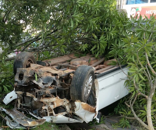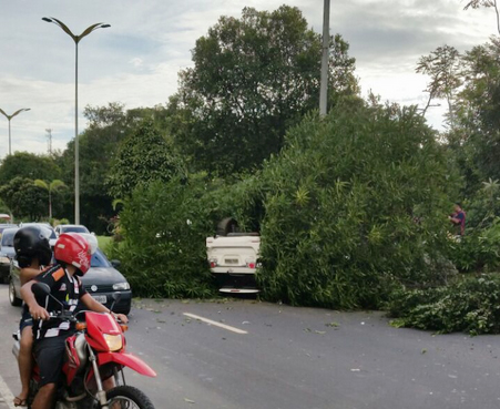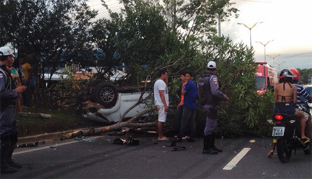 Avenida do Turismo: Carro em alta velocidade capota e motorista fica ferido