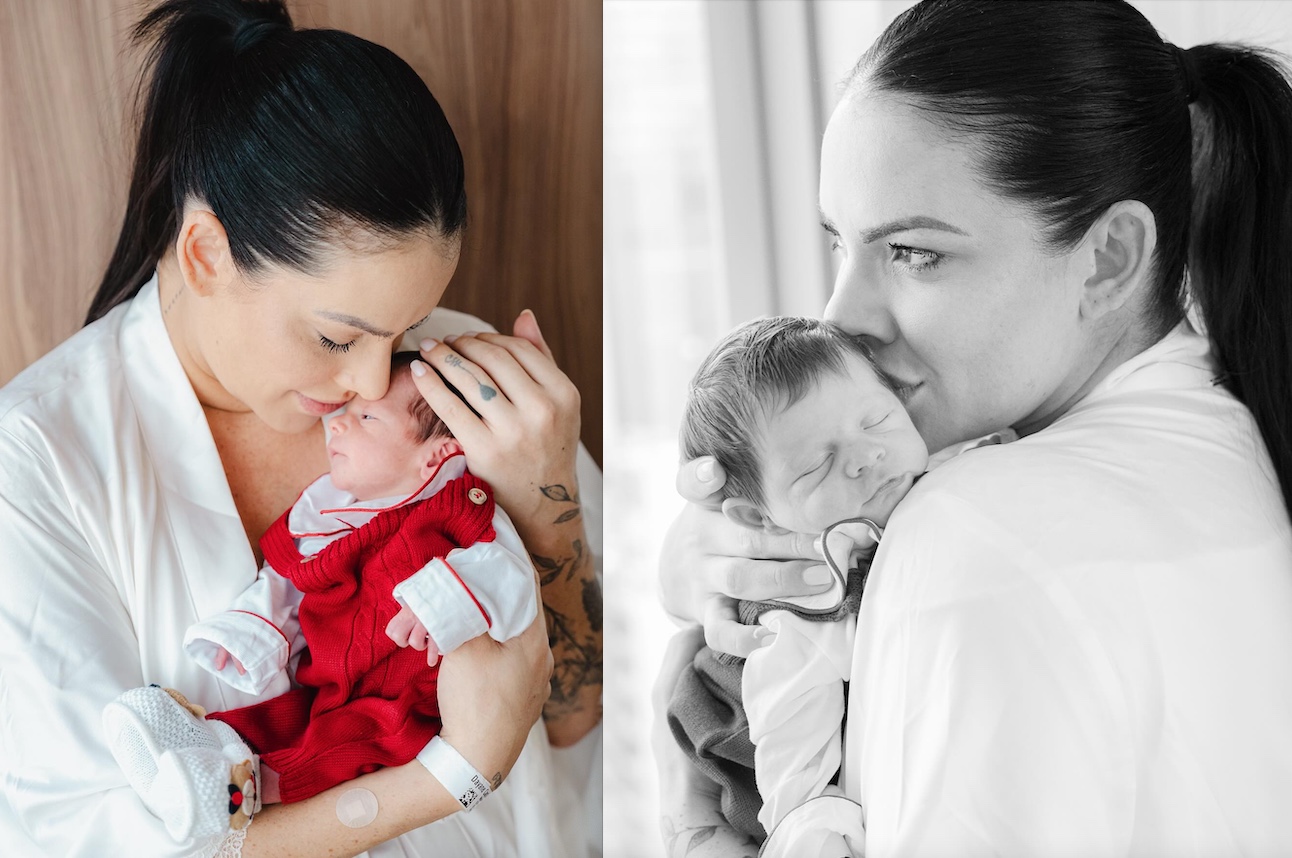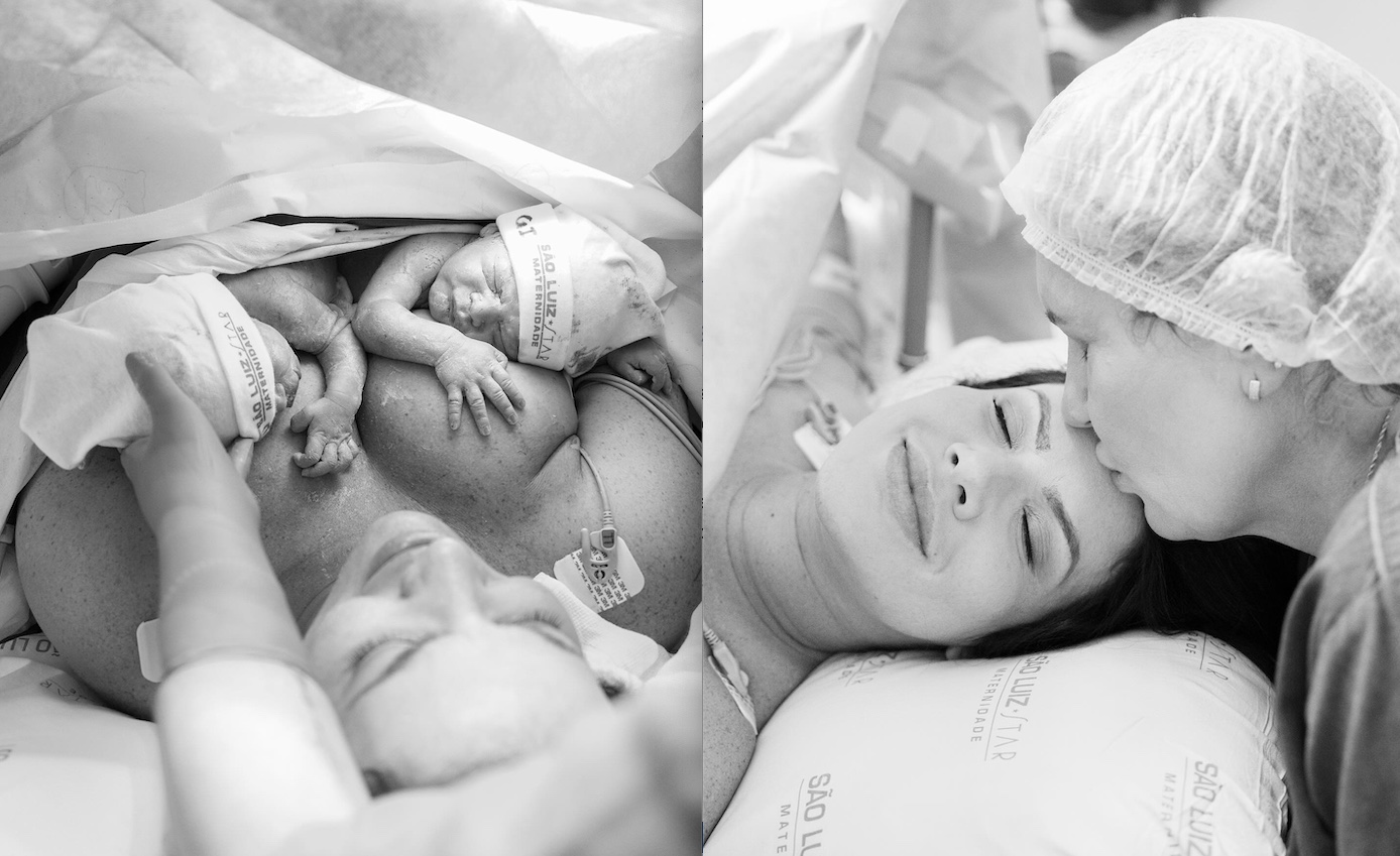 As imagens foram registradas no parto, e mostram além do rostinho dos bebês, a emoção do momento entre as mães.