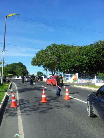 Dia amanhecendo e a blitz a postos na avenida do Turismo