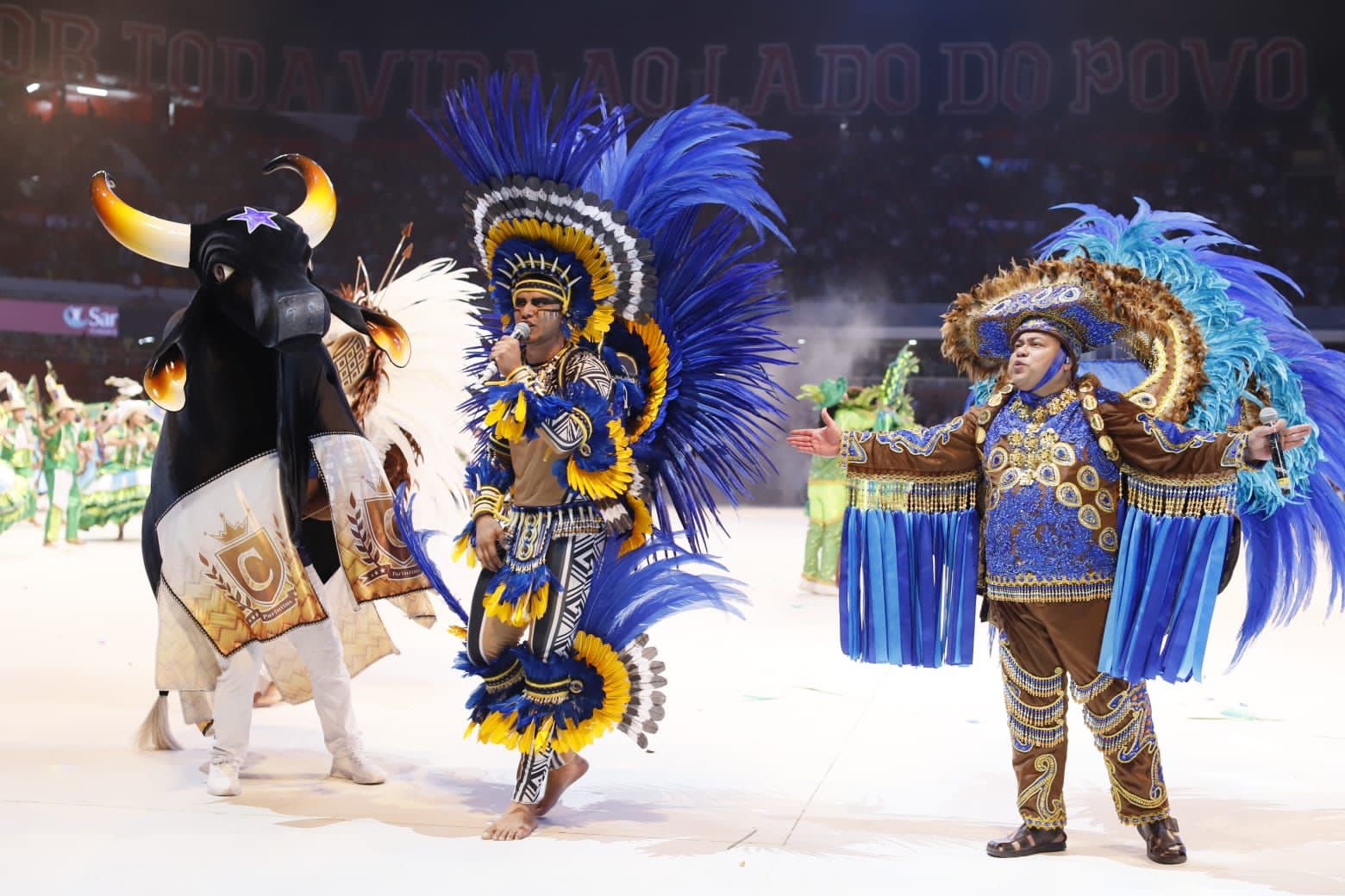 Logo depois, o Bumbódromo veio a baixo, em êxtase com a Lenda Amazônica “Ypuré, a senhora da ganância”, com o trabalho alegórico gigantesco do artista Roberto Reis. O momento, que arrancou suspiros do povo azul e branco e arrebatou toda a multidão com módulos suspensos sobrevoando o Bumbódromo, revelou a cunhã-poranga Marciele Albuquerque.