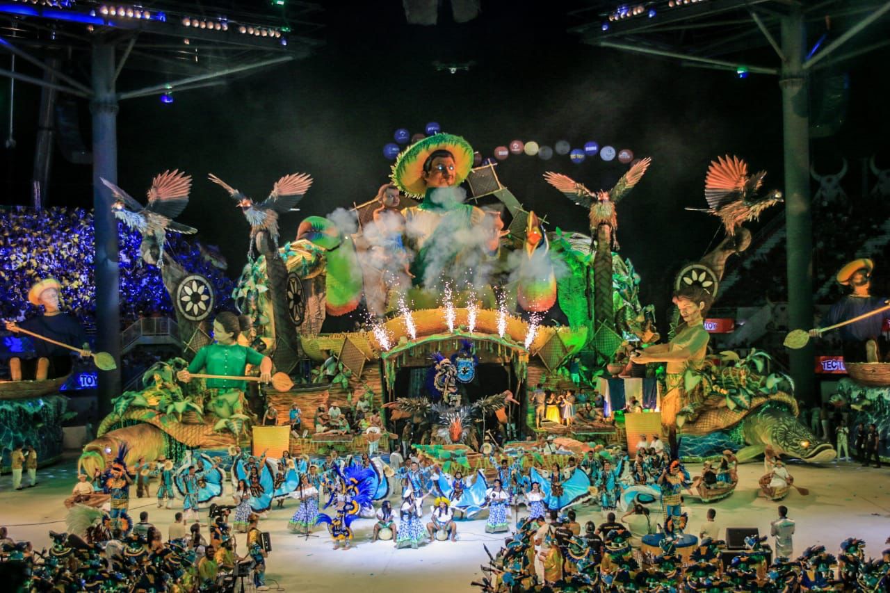 A transformação da alegoria trouxe a exaltação cultural da noite, com as aparições do boi do povo de Parintins, da sinhazinha da fazenda Valentina Cid e da vaqueirada do Caprichoso. A Figura Típica Regional “Cabocla Ribeirinha”, assinada pelos artistas Márcio Gonçalves e Marlúcio Pereira, trouxe para a arena as Suraras do Tapajós, as guerreiras ribeirinhas que cantaram ao lado de Patrick Araújo para anunciar a chegada da porta-estandarte, Marcela Marialva.