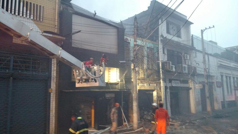 Manaus/AM - Na noite da última quarta-feira (30) a parte superior dos dois prédios afetados por um incêndio pela manhã tiveram que ser demolidos pelos bombeiros. A estrutura estava comprometida e os militares acharam melhor derrubá-la para não causar problemas posteriores à edificação. Foi utilizado para essa tarefa um muque cedido pela Prefeitura de Manaus.