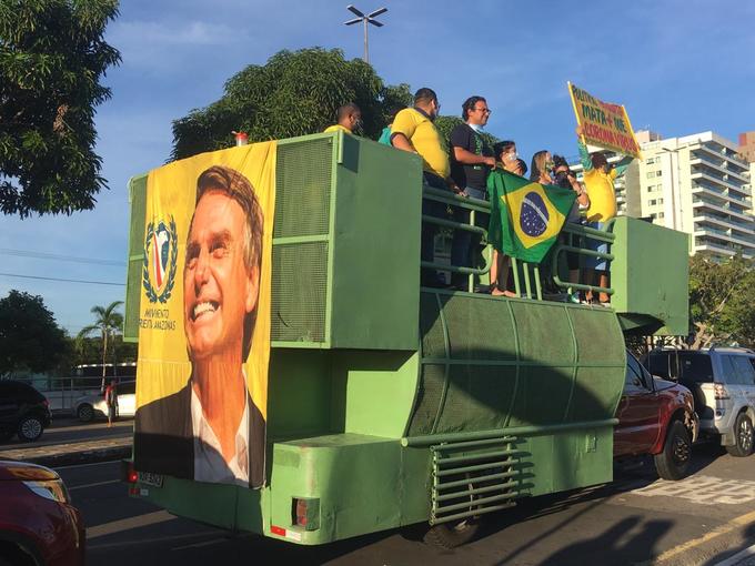 Manaus/AM - O encerramento da carreata a favor de Bolsonaro e defesa da abertura total do comércio no Amazonas foi marcada por bunizaço e uma oração, no calçadão da Ponta Negra, na tarde desta domingo (14).