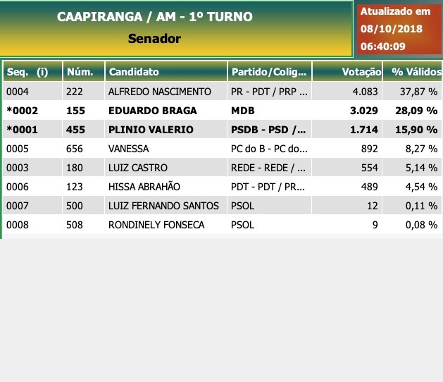 Início Amazonas Caapiranga: Senador - Candidatos mais votados