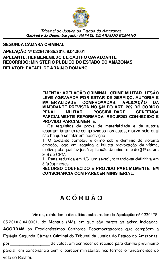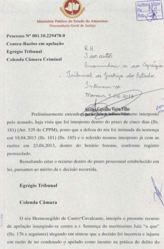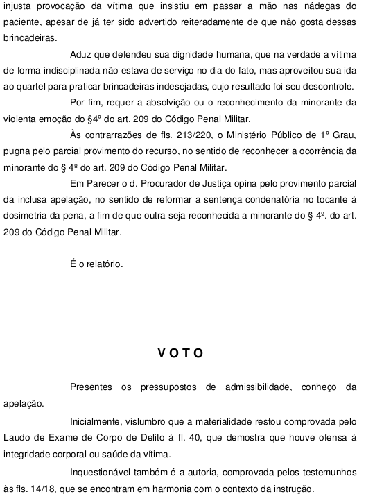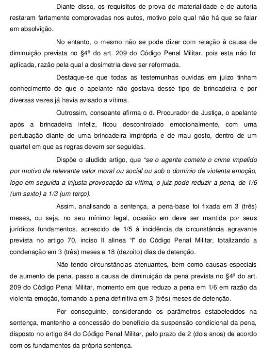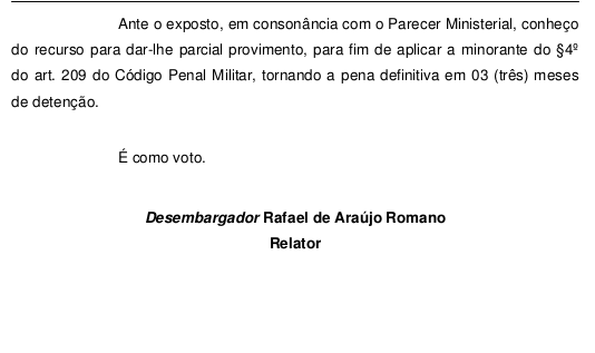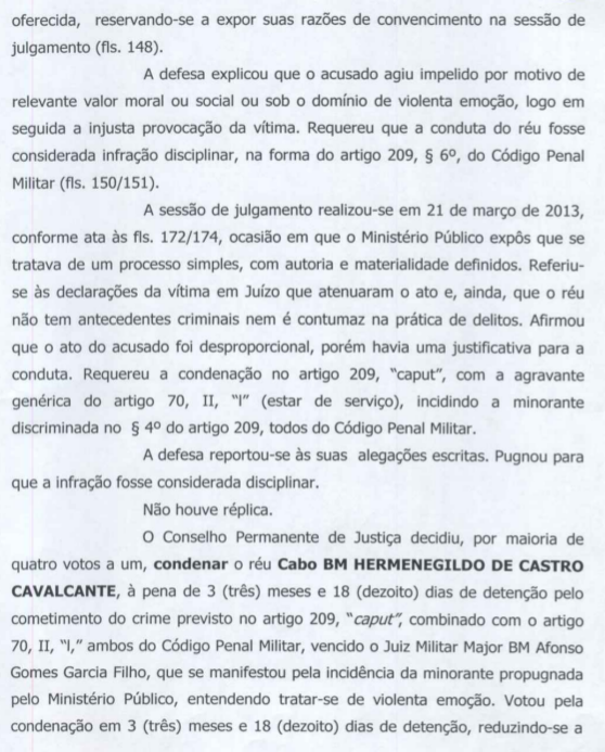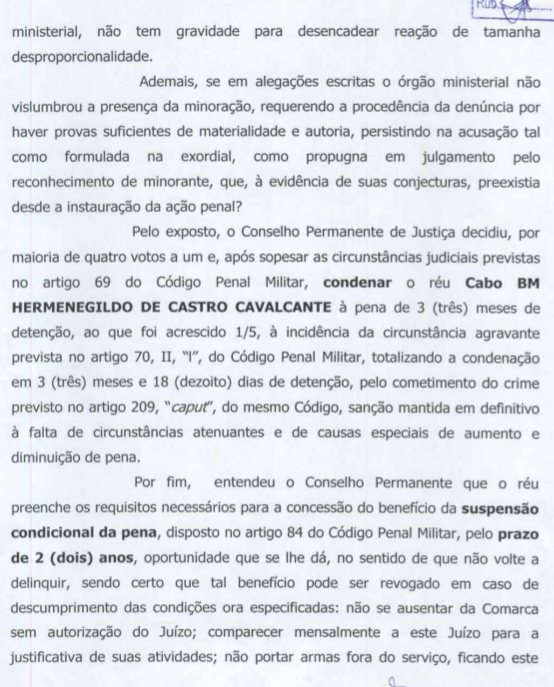 Entreranto o cabo terminou sendo beneficiado pela suspensão condicional da pena. Veja a decisão da Justica Miilitar, os argumentos da defesa, o parecer do Ministério Público e o recurso ao segundo grau.