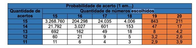 Atualmente, é possível apostar de 15 a 18 números dentre os 25 disponíveis no volante. Com a mudança, será possível marcar até 20 números por volante, aumentando a probabilidade de acerto: