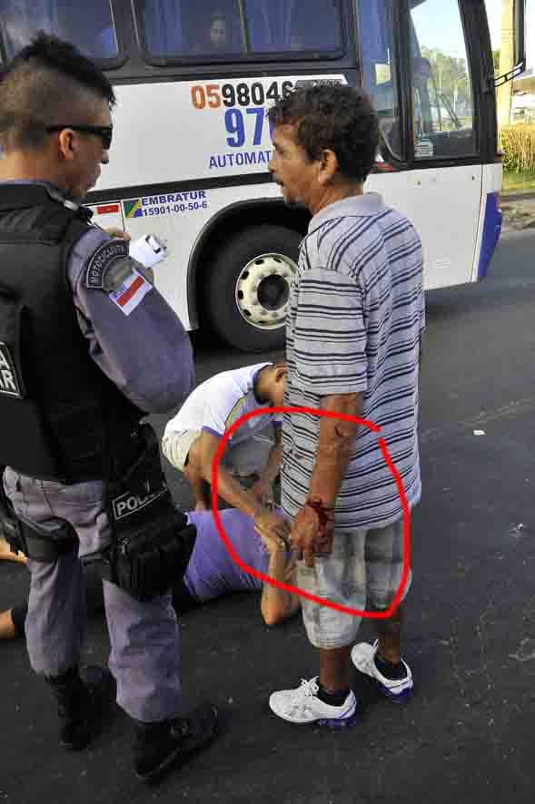 No final da tarde deste domingo, o trânsito ao longo de toda a Avenida Mário Ipiranga Monteiro - antiga Recife - estava bem calmo. Mesmo assim, por volta das 17horas, Rosana Souza e Artur Macedo foram bater no meio fio com a moto na qual trafegavam e ficaram bem machucados.