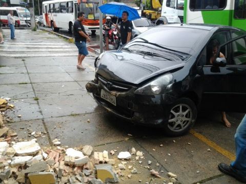 Manaus/A – AM – No cruzamento da rua Salvador com a avenida Jornalista Umberto Calderaro (Ex-Paraíba), quem se deu mal foi o Restaurante Chinês localizado em frente ao fórum, próximo à Sefaz, quando, na manhã desta terça-feira, 11, um caminhão bateu na traseira do Honda Fit de placas JXQ-4956. Com o impacto, o Fit se chocou com a fachada do restaurante derrubando parte dela. A briga é fazer o proprietário do caminhão pagar o prejuízo dos dois ofendidos.