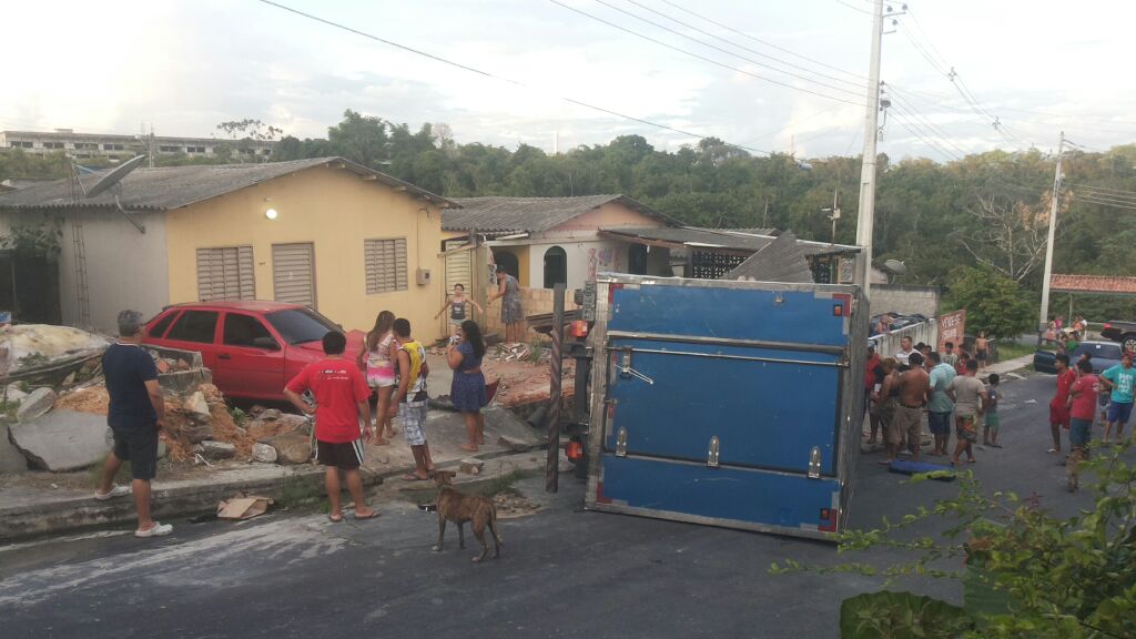MANAUS - Caminhão perde controle e atinge carro estacionado em Manaus Um caminhão tombou na tarde desta quinta-feira (26), na rua Ostra, Conjunto Lula - Cidadão 9, bairro Distrito Industrial 2, Zona Leste de Manaus.