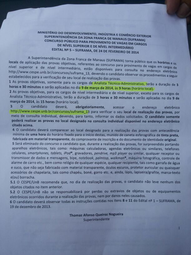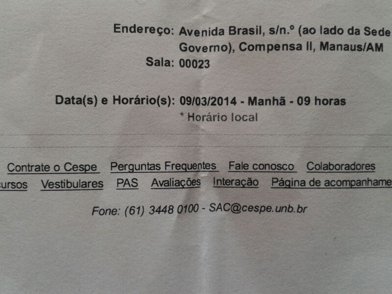 Alegando que o horário definido em edital era o de Brasília, a Fundação Cespe determinou o fechamento dos portões uma hora antes do que estava determinado no cartão de inscrição dos candidatos que participam neste domingo do concurso da Suframa, dando inicio a uma série de protesto que terminou na delegacia. A confusão ocorreu por que no cartão de inscrição constava horaŕio local. Veja fotos: