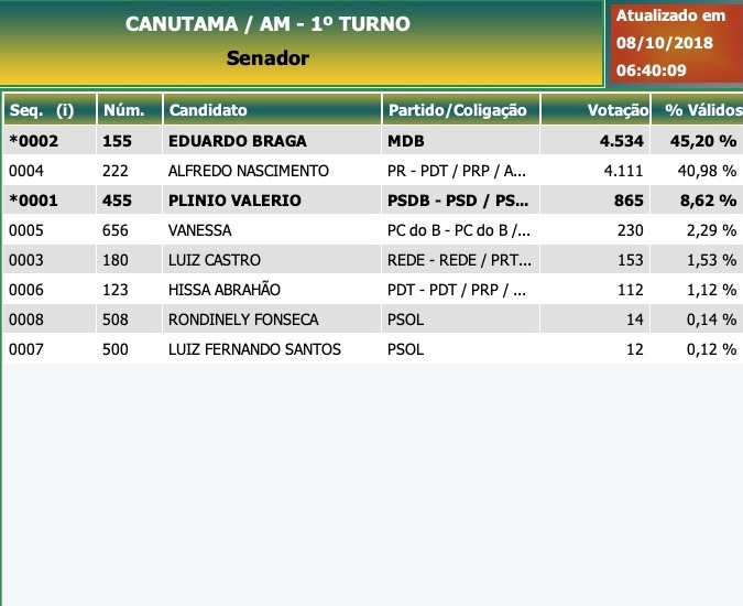Início Amazonas Canutama: Senador - Candidatos mais votados