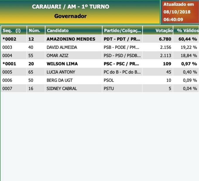 Início Amazonas Carauari: Governador - candidatos mais votados