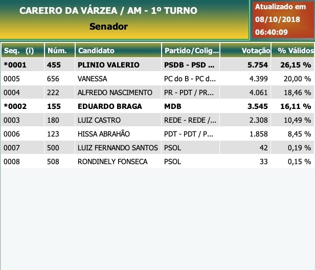 Início Amazonas Careiro da Várzea: Senador - Candidatos mais votados