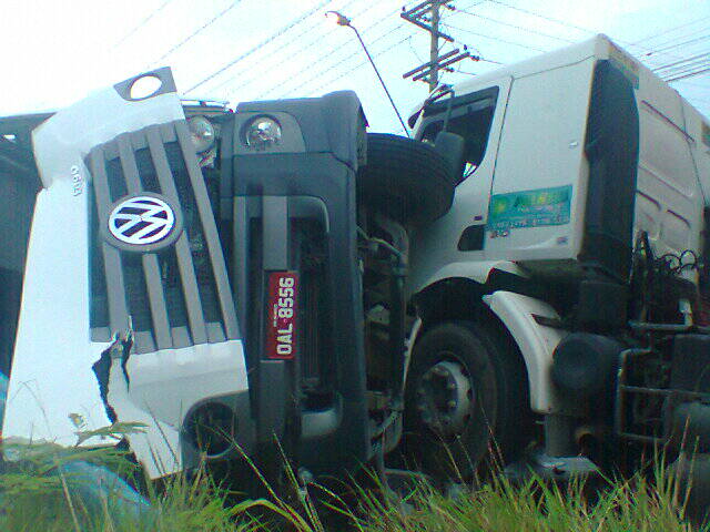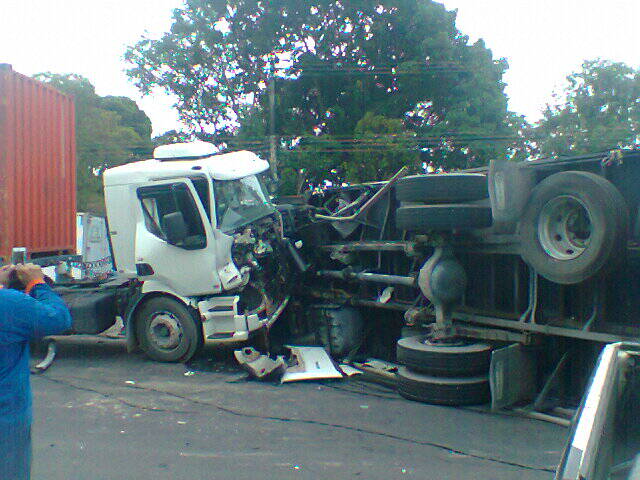 Manaus/AM - Uma carreta e um caminhão se chocaram, avenida Min. João Gonçalves, nas proximidades da Refinaria Isaac Sabbá, a Reman, em frente à Sony, Zona Sul, por volta das 15h30. A carreta de placas OAL-8556, tombou. Conforme informações recebidas pelo Portal do Holanda, o motorista do caminhão teve ferimentos.