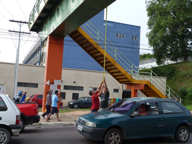 altura da passarela e se surpreendeu, pois a mesma só tinha 4,85 metros, quinze centímetros abaixo do limite marcado no local.