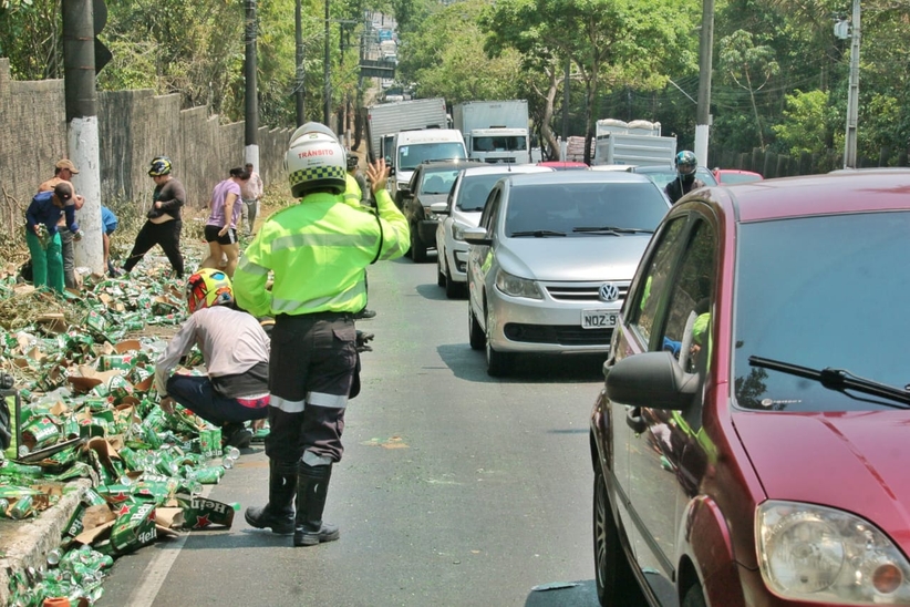 Não há relatos de feridos. Populares se aproveitaram da situação para recolher as latinhas e long neck de cerveja da marca Heineck espalhas pelo chão.