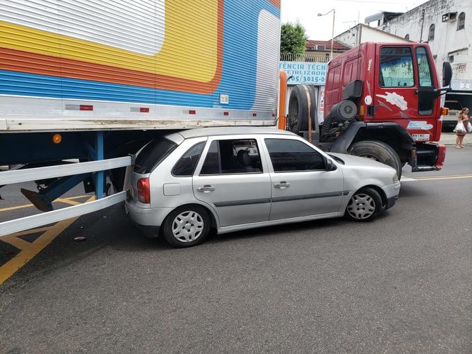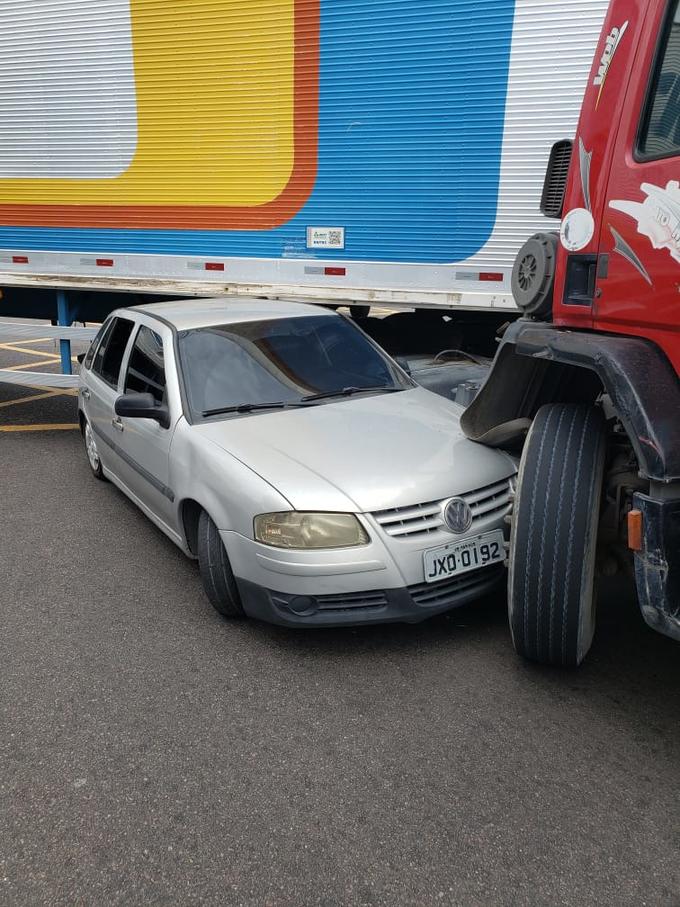 Manaus/AM - Um carro modelo gol “entrou” na estrutura de um carreta durante um acidente de trânsito ocorrido essa manhã (21), na av. Castelo Branco com a Manicoré, no bairro Cachoeirinha, na Zona Centro-Sul.