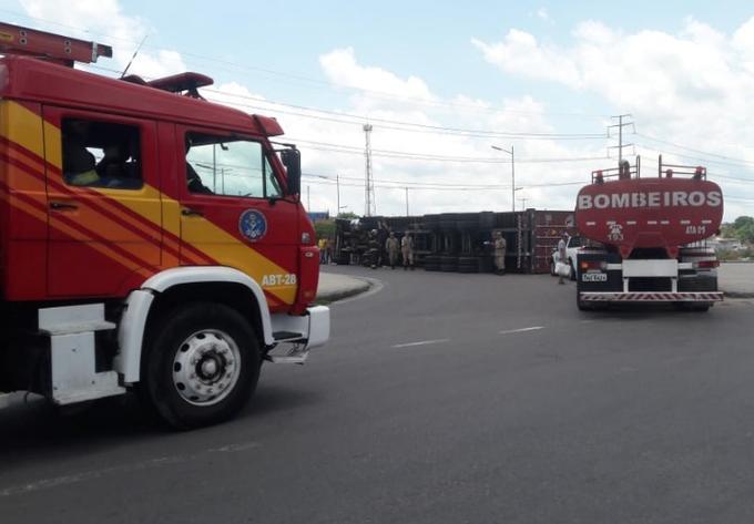 Manaus/AM - Uma carreta tombou em Manaus nesta terça-feira (10), na avenida Natan Xavier, zona Leste da capital. O motorista tentou fazer o retorno na ponte que liga os bairros São José e Novo Aleixo, quando perdeu o controle do veículo devido ao peso do contêiner e acabou tombando na via.