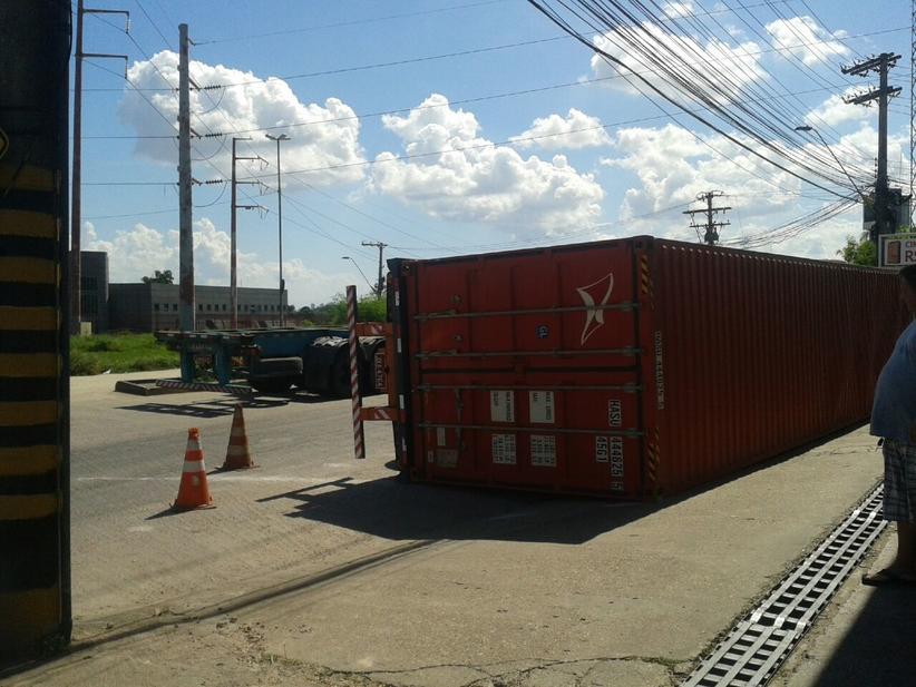 Manaus/AM - Uma carreta tombou na tarde desta sexta-feira (15), nas proximidades de uma rotatória na avenida Abiurana, Distrito Industrial, zona Leste.
