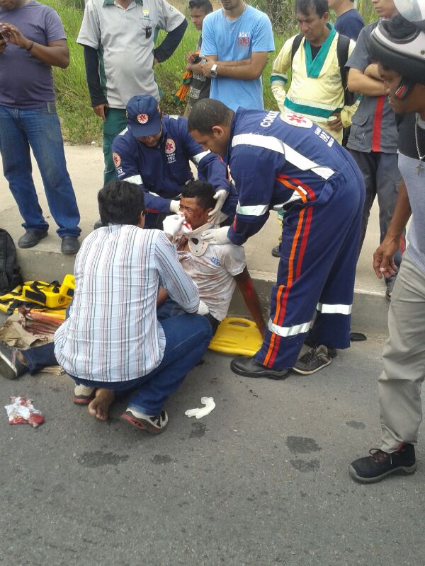 Uma carro não identificado bateu em uma moto, na avenida das Torres, em Manaus, deixando o motoqueiro gravemente ferido. Equipe do Samu chegou ao local, prestou os primeiros socorros e conduziu a vítima para o pronto-socorro João Lúcio. Testemunhas disseram que o motorista do carro não percebeu a moto ao seu lado e tentou dar um retorno, quando o acidente ocorreu.