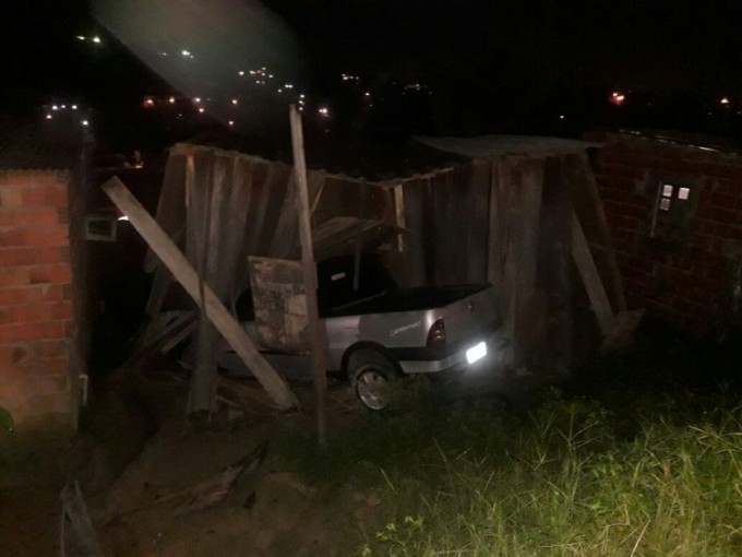 O veículo modelo picape, de cor prata, deslizou na rua que não é asfaltada e acabou atingindo a casa. Por sorte, ninguém morava mais na residência que ficou totalmente destruída. Até o momento não há registro de feridos.