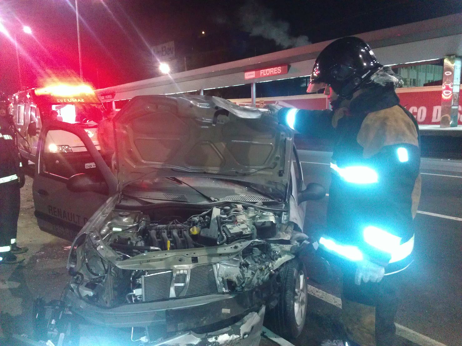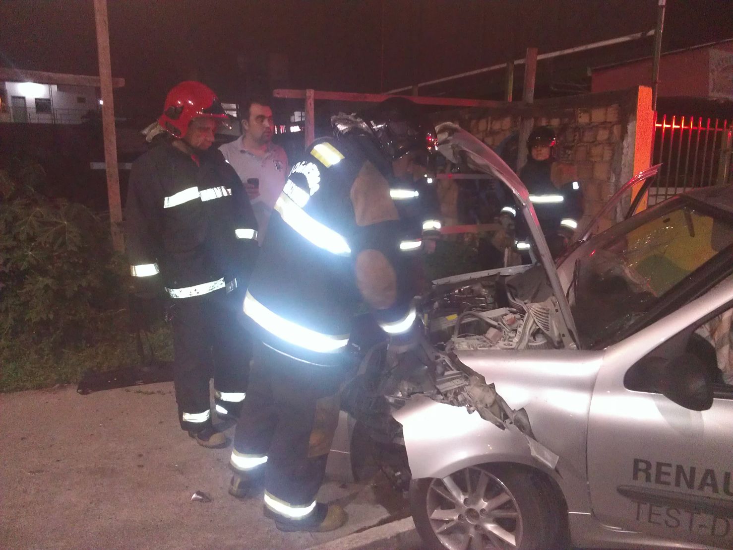 Manaus - Alfredo Souza Cavalcanti Jr saiu com ferimentos leves após bater com o carro de teste-drive da concessionária Renault , placa AYI 7305, contra a plataforma do Expresso, na avenida Constantino Nery, na madrugada deste sábado. Com o impacto, o carro capotou e foi parar em frente do hotel Dannut, do outro lado da pista. Bombeiros foram chamados ao local depois de o carro começar a esfumaçar. Com o risco de incêndio, a bateria foi desligada. Alfredo foi encaminhado ao pronto-socorro com ferimentos leves. O carro, usado em teste drive - tem placa de Curitiba e é fornecido pela montadora para que clientes das concessionárias façam testes antes de comprar veiculo da marca. Alfredo vai ter que explciar o que fazia com o carro da concessionáaria passenado na madrugada.