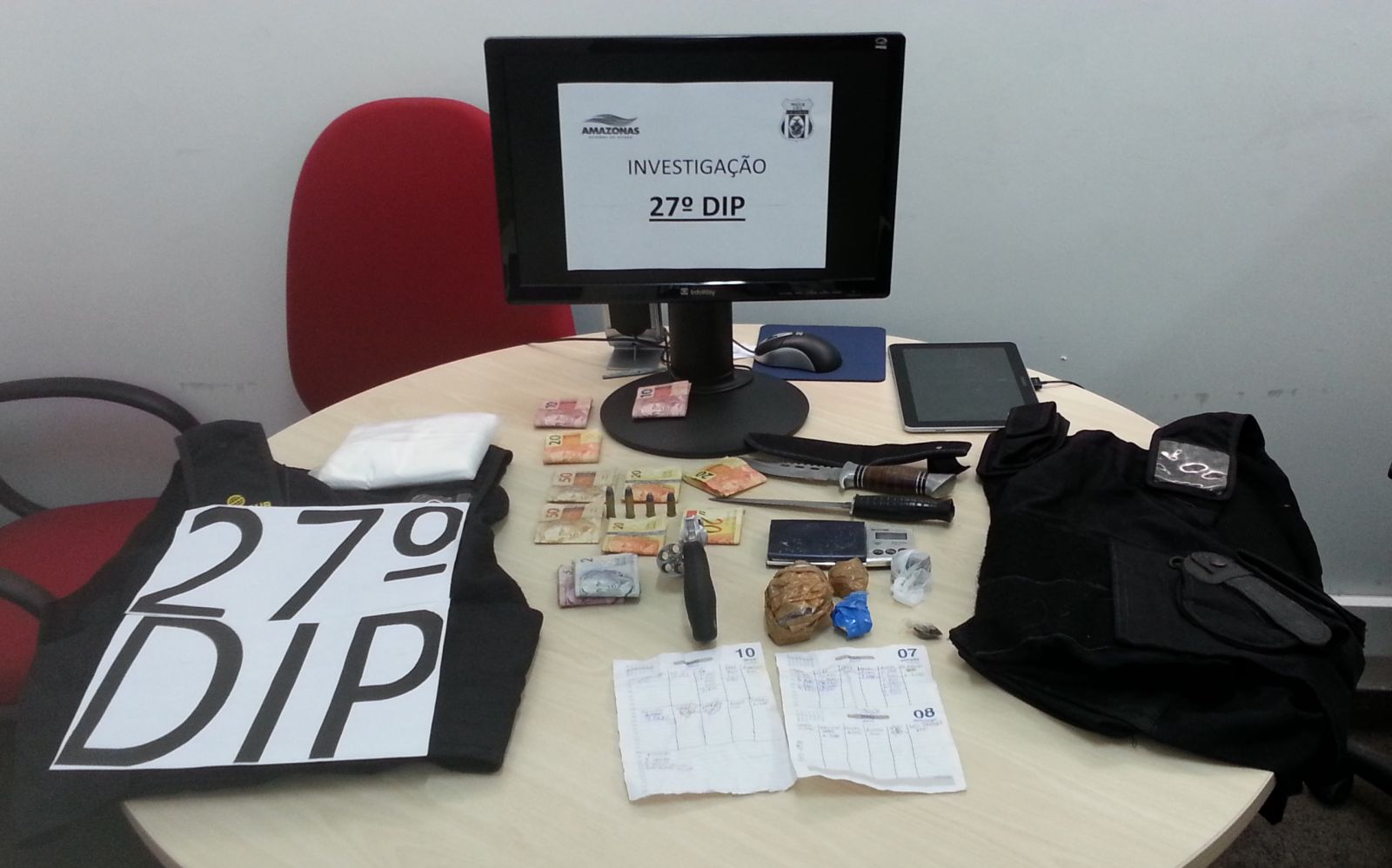Policiais Civis do 27º DIP efetuaram as prisões em flagrante de Idael Nascimento de Souza e Susi Oliveira Pereira, no bairro Cidade de Deus, em cumprimento de mandado de busca e apreensão.