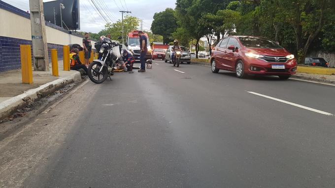 Manaus/AM - Um casal ficou ferido após ser atropelado por um carro na avenida Efigênio Sales, por volta das 6h, nas proximidades do TCE, na Zona Centro-Sul.