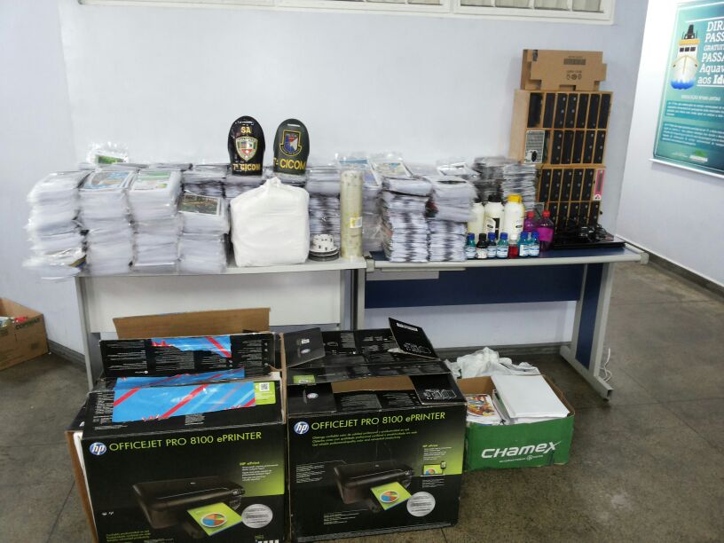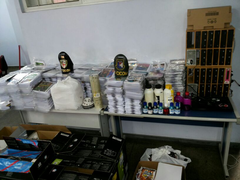 No local foram apreendidos 5 mil discos de mídia, jogos eletrônicos, 24 gabinetes para gravação, 4 impressoras, além de todo o material necessário para a produção dos DVDs e CDs piratas.