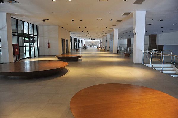 A diretora-presidente da Amazonastura explicou que o projeto do centro de convenções foi dividido em duas etapas: a primeira é o espaço que atualmente está pronto e serve para convenções e feiras. A segunda será a construção de um prédio de nove andares na parte de trás do terreno.