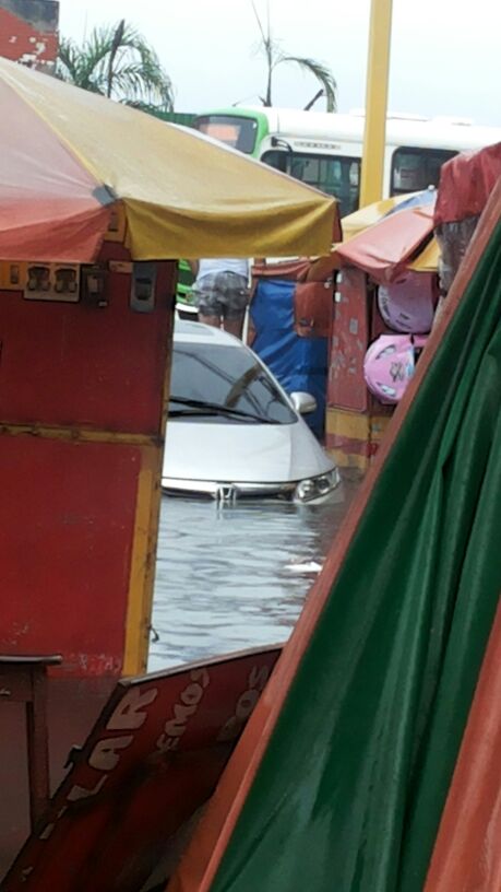 Embaixo d'água literalmente. A cena mais marcante foi a de um carro quase que completamente encoberto pela água que tomou o lugar durante este sábado, 26.