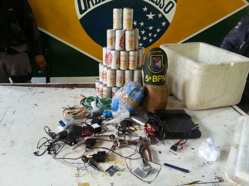 Os policiais fizeram vistoria no complexo e constataram a veracidade da denúncia. Dentro do presídio encontraram: