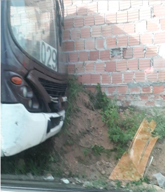 Manaus/AM - Um ônibus da linha 029, da empresa Açaí Transportes, bateu no muro de uma residência na tarde desta sexta-feira (11), na rua Palmeiras, bairro Monte da Oliveiras, zona Norte.