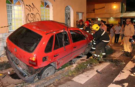 O condutor do Gol usava o cinto de segurança e ficou preso no veículo.