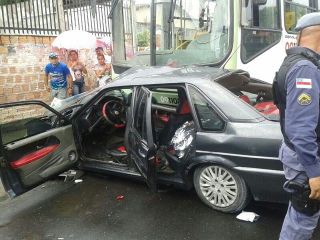 Colisão entre ônibus da linha 005, da Líder, e o VW Santana, placas JGS-0680, ocorrida na manhã desta terça-feira, 17, levou à morte de Ernandi Ribeiro Machado, 42.