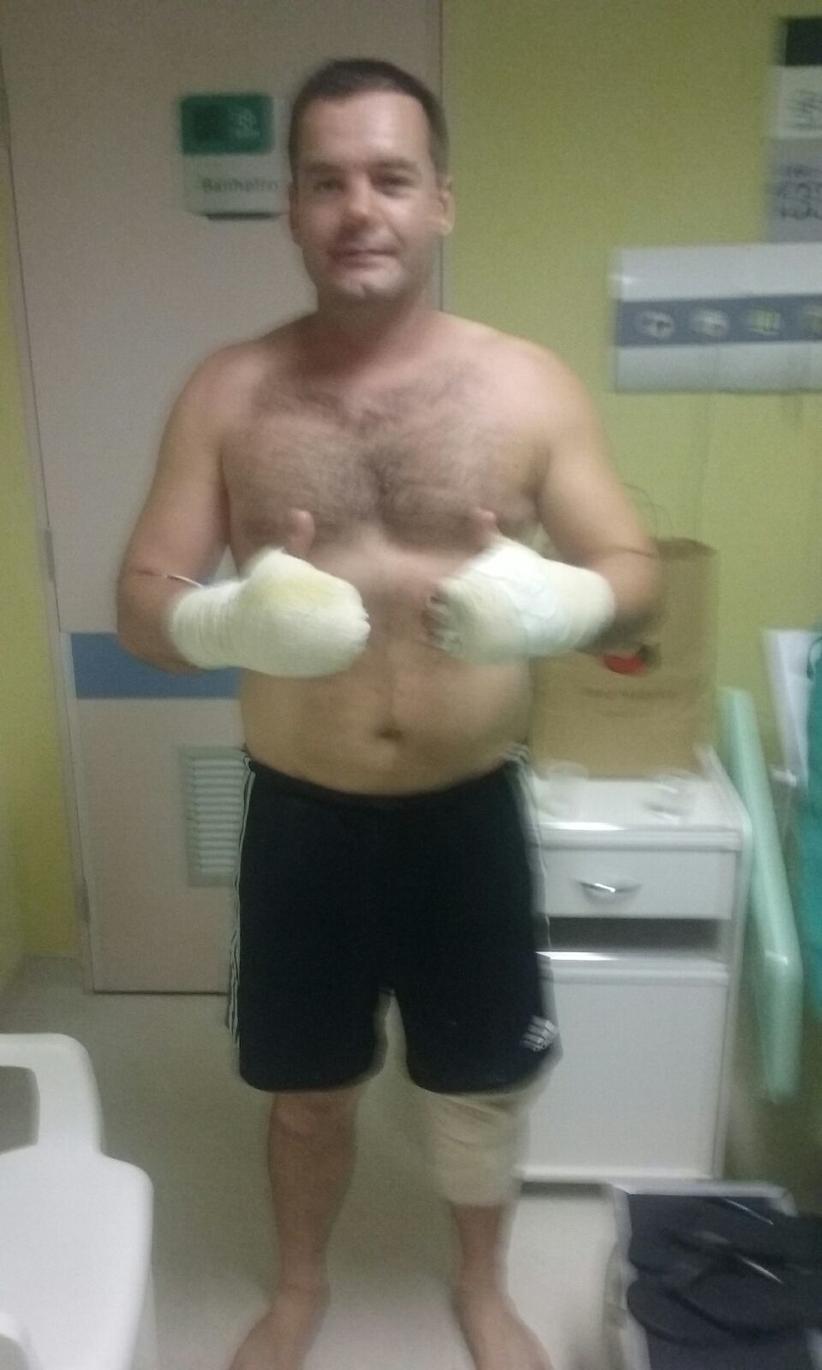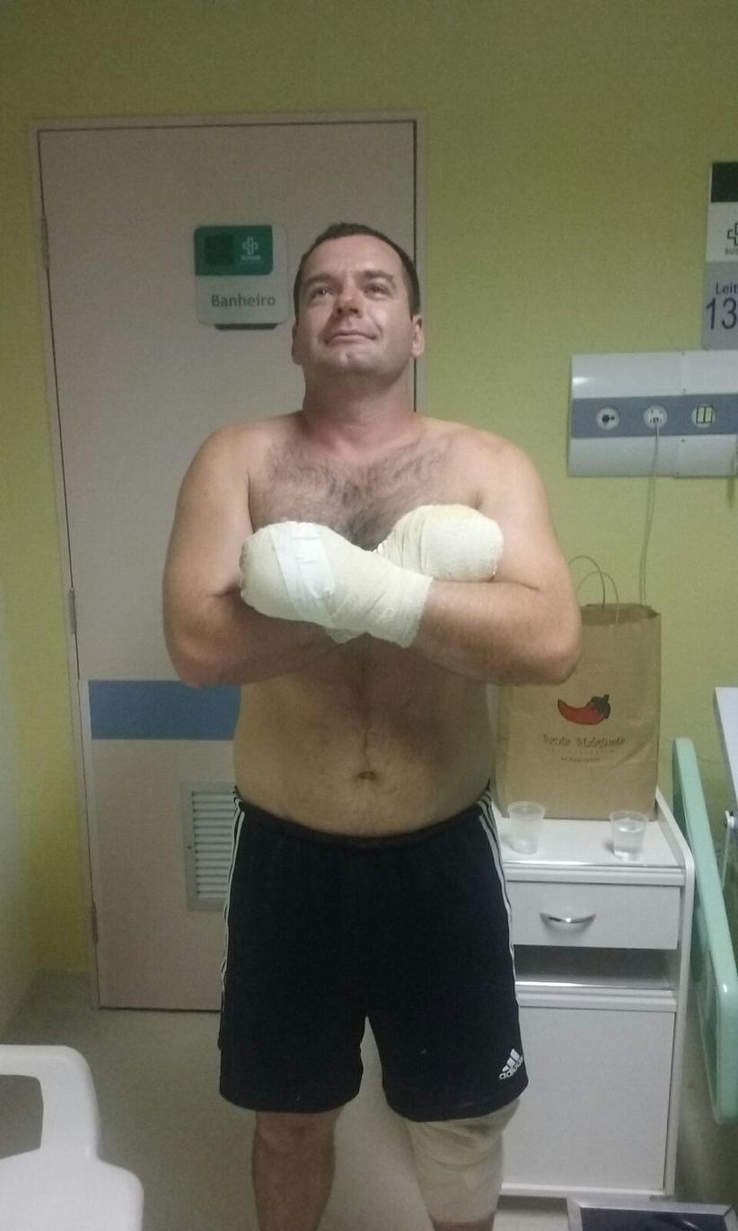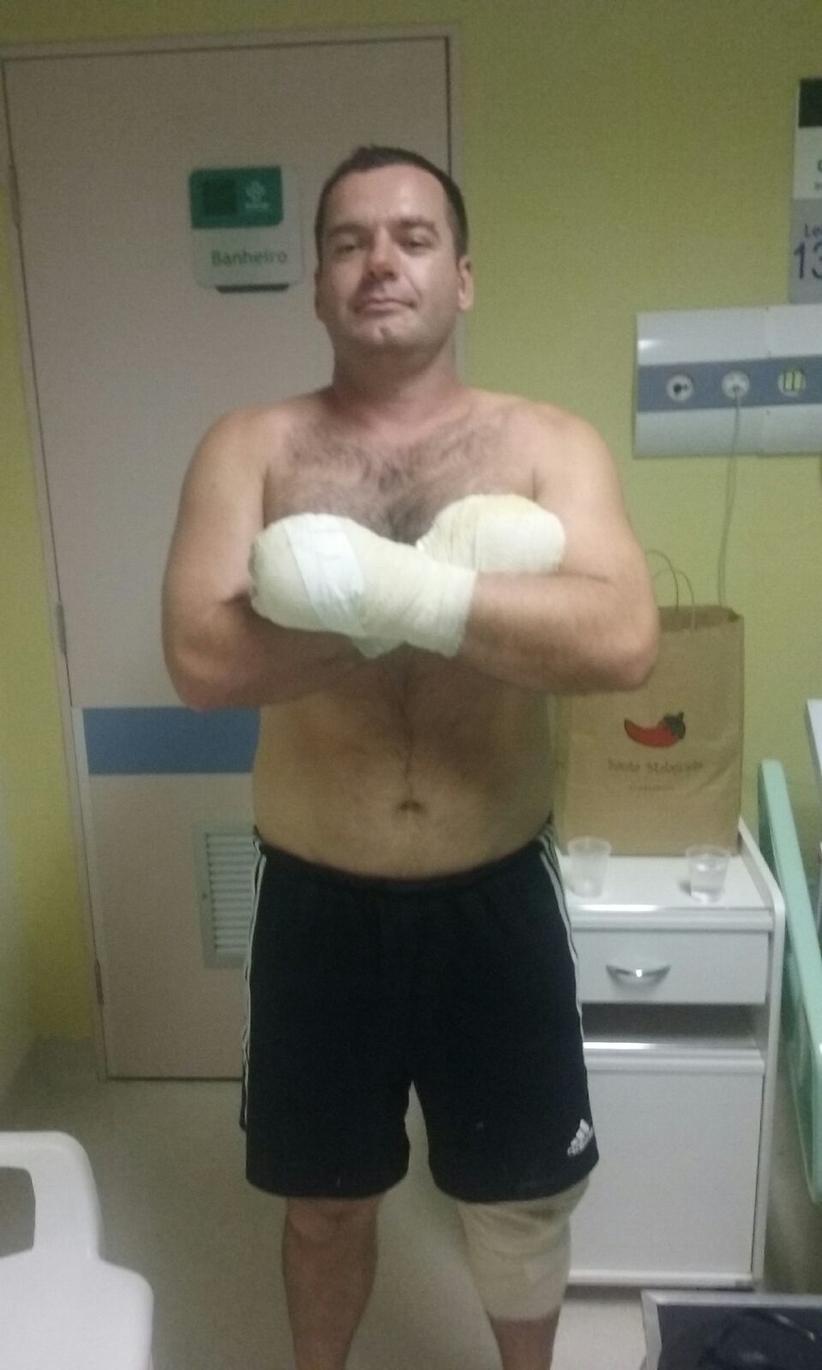 Enquanto o homem estava em chamas, o comandante do Comando de Operações Especiais, o capitão Laércio Jandir Arndt, apagou o fogo que envolvia o corpo do homem e na tarefa ainda queimou mãos, braço e perna. Ele segue internado no HPS 28 de Agosto em observação.