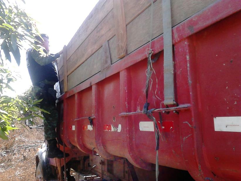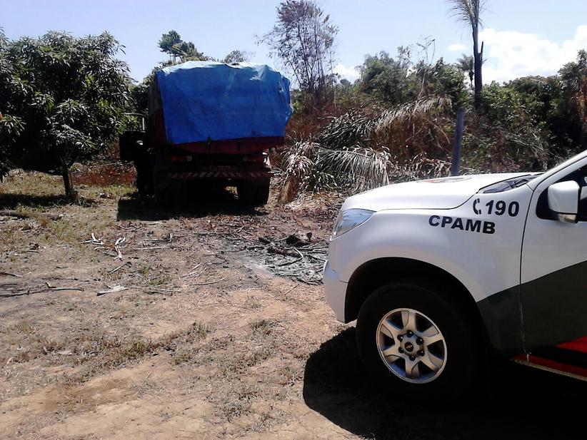 Flagrada com madeira ilegal, dupla abandona caminhão e se esconde em mata