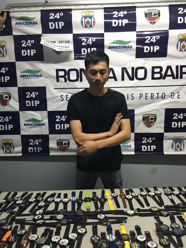 Manaus/AM - O comerciante chinês Lin Xiang Bao, 25, foi preso em flagrante suspeito de receptação e crime contra a lei de marcas. Durante a prisão, foram apreendidos relógios colocados à venda na loja dele.