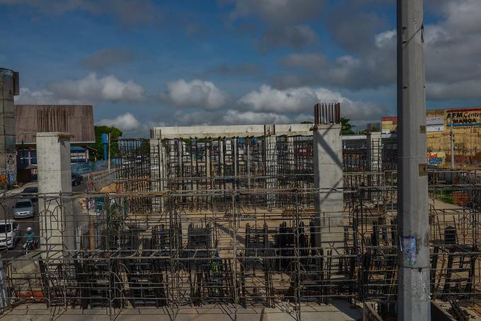 No complexo viário do Manoa, a parte de fundação está concluída com a fixação de 27 pilares, que serão a base de nove vigas-travessas, ou seja, a parte superior da estrutura. Essas vigas pré-moldadas já começaram a ser implantadas sobre os pilares e, após serem totalmente montadas, vão receber o tabuleiro, a laje e, por fim, o asfaltamento.