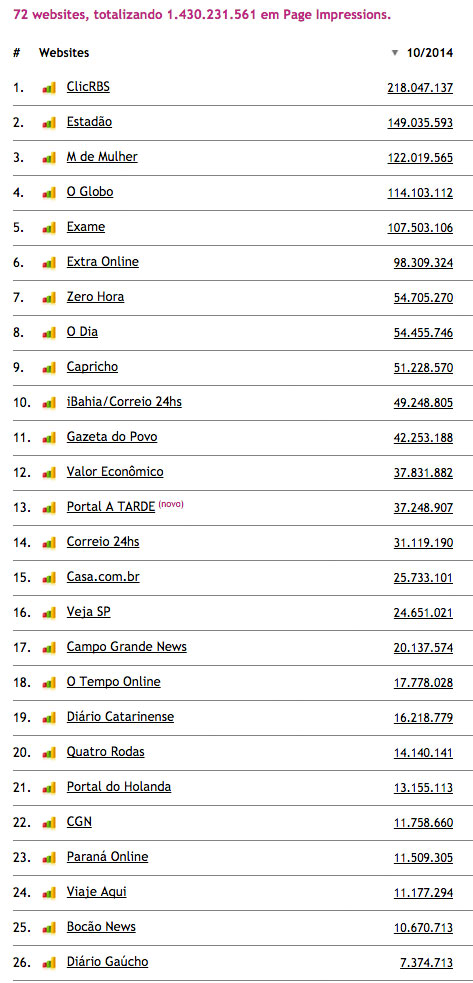 Confira a lista de sites mais acessados do Brasil, segundo o IVC
